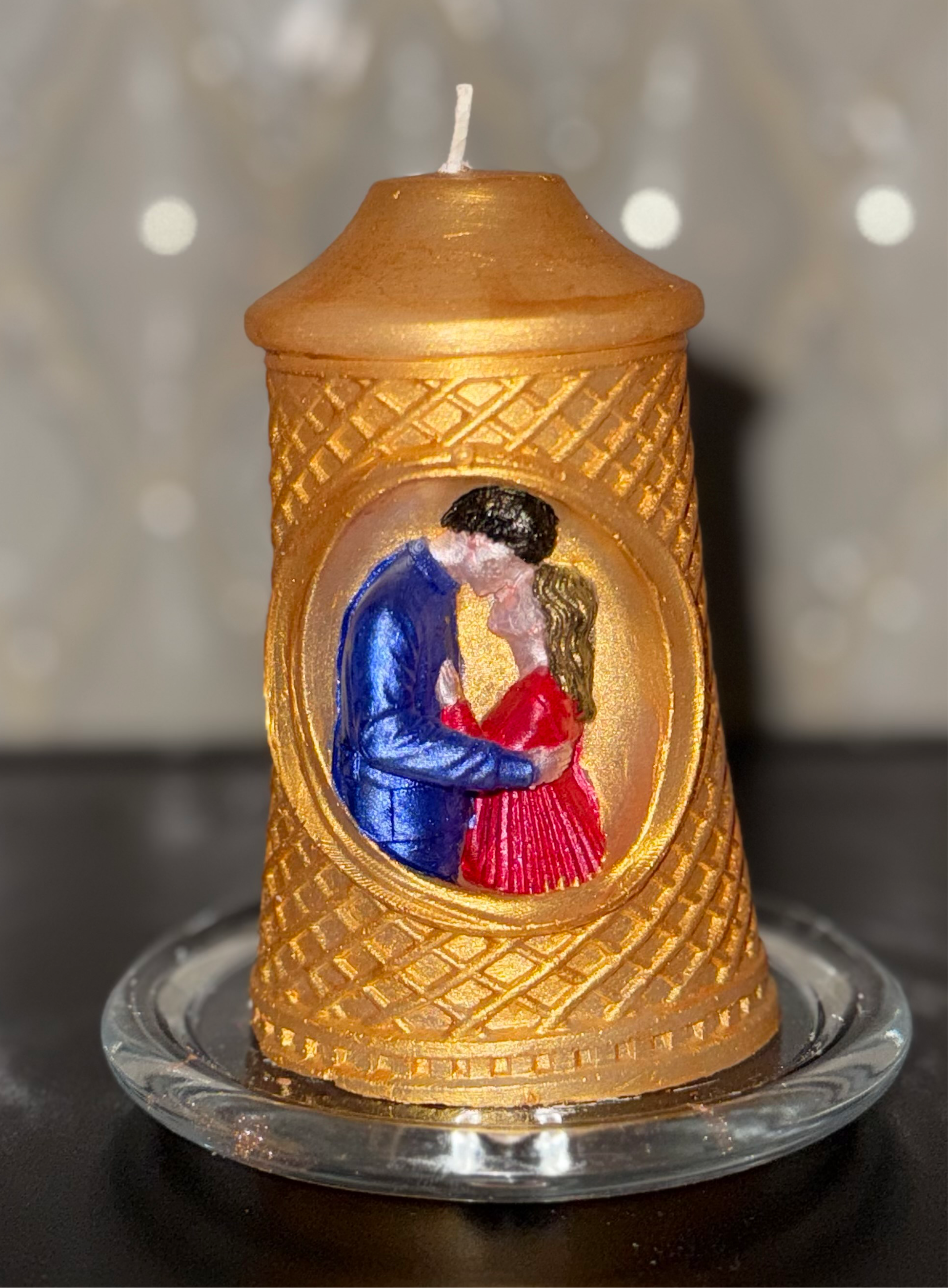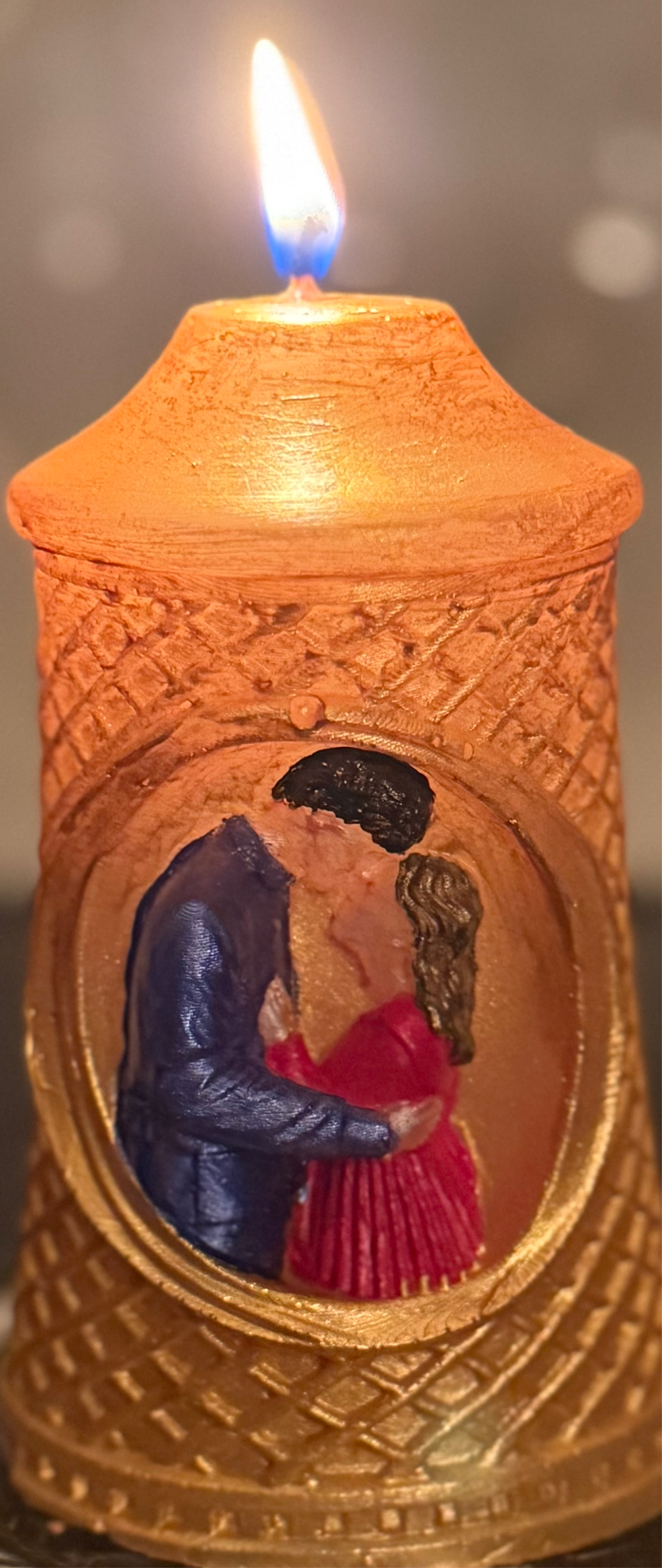 Experience the elegance of "Holding You Near & Dear" with its unique and personalized design of an embracing couple. Select from various options including skin tone, hair color, clothing, and candle color. Ideal for gifting or adding a personal touch to your home decor. Complete with a candle holder.
